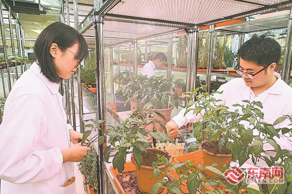 福建农林大学通过多种方式提升学生专业技能。图为10月14日,该校智慧农业实验室内,学生对种植的辣椒进行采样检测。福建日报记者 游庆辉 摄