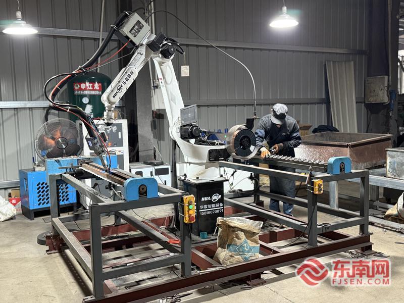 福建永德利实业有限公司的生产车间,机械臂正在焊接剪刀。