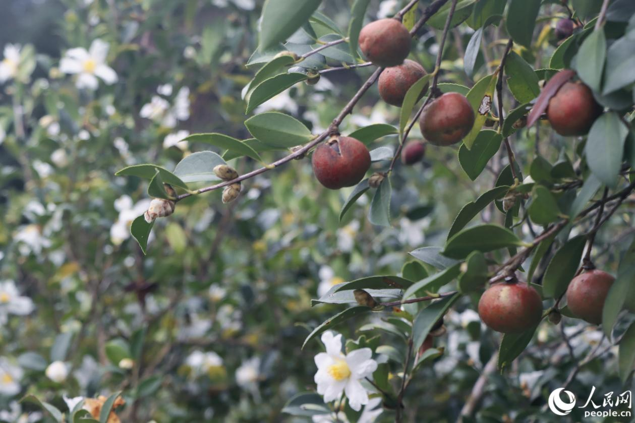 油茶花具有“花果同株”的独特现象。人民网 林铭贤摄