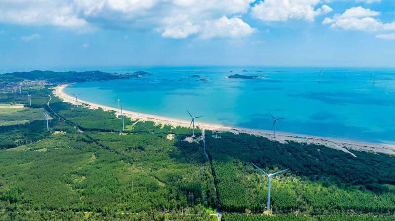 在平潭长江澳,郁郁葱葱的林海沿着海岸线延伸。 通讯员 林君斌 摄