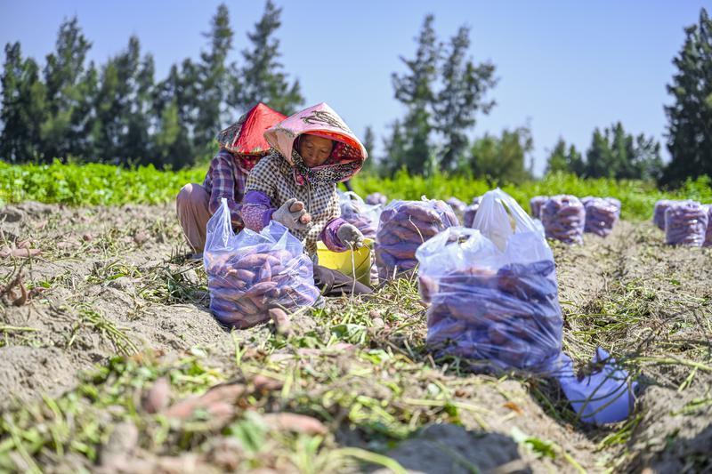 在幸福洋四期盐碱地上,农户忙着收获甘薯。 通讯员 林君斌 摄