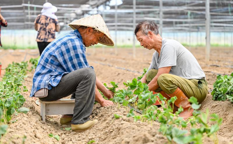 在当盛村闽台融合生态采摘园,农户开启秋季草莓、小番茄种植工作。 通讯员 林君斌 摄
