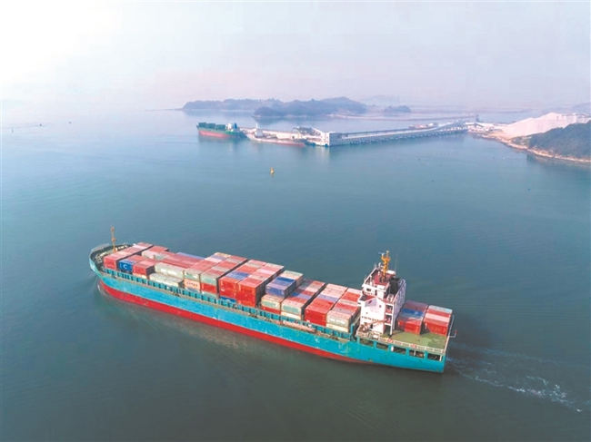 日前,在漳湾作业区21号泊位,满载集装箱的货轮有序进出,港区作业火力全开,一派繁忙景象。