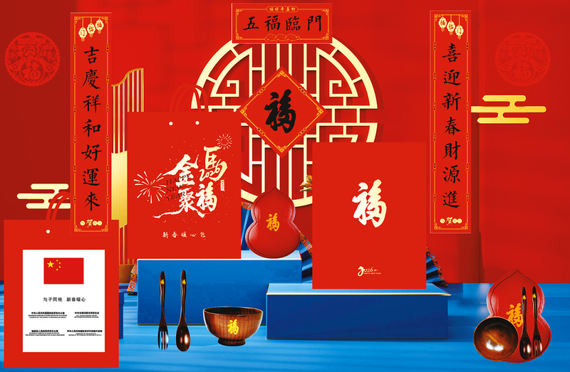 此次“新春暖心包”由国务院侨办会同中国侨联联合福建省侨办及驻外使领馆寄赠,一封新春家书、一份新春贺礼,向远在异乡的侨胞传递“家”的温暖与牵挂。今年的暖心包既体现福建特色,又承载中华传统文化的深厚底蕴。突出“春节”、“暖心”等元素,以“福”字为主题,“福”字既是代表福建、又表示中国传统“福”字的美好寓意,融入福建省“福”文化。礼包中有福盘(葫芦形状,寓意“福禄”)、福碗、福叉福勺,使用福建传统大漆工艺(属国家级非物质文化遗产),并铭上康熙“天下第一福”的“福”字,将五福之寓隐含其中,寄予侨胞们幸福安康、事业兴旺的美好祝愿。
