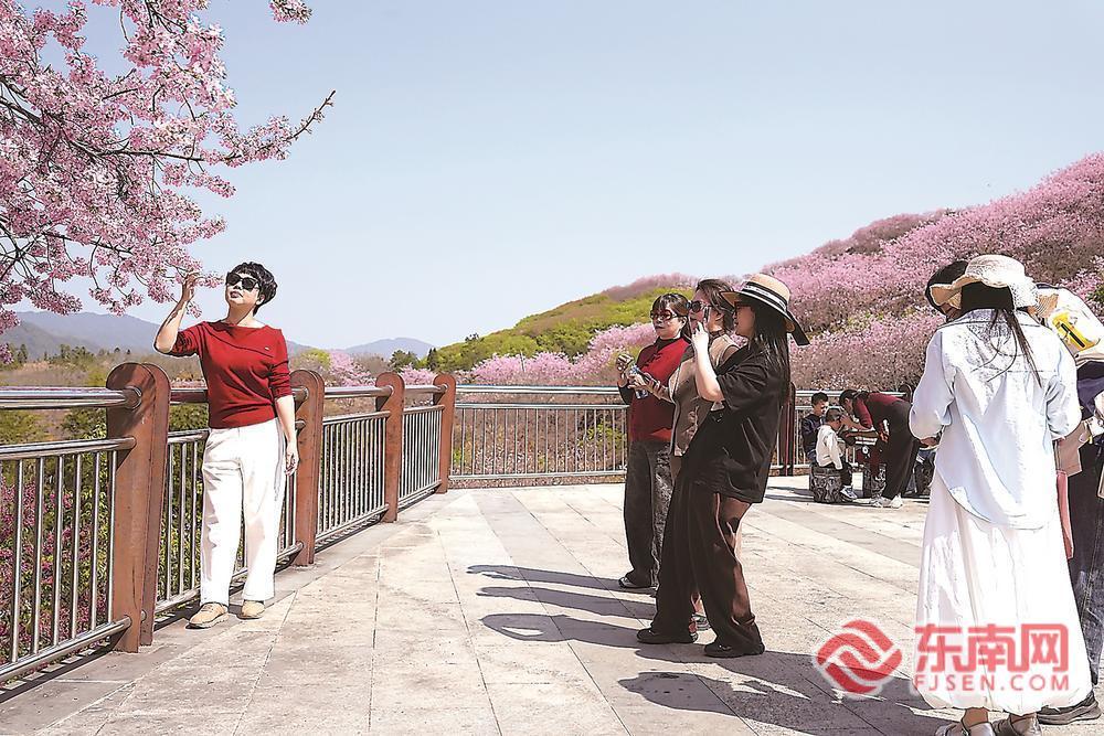 不远处的花海步道间,年轻情侣举着相机定格花瓣落下的浪漫瞬间,孩童们嬉笑着在林中追逐。不少台胞三五成群围坐在樱花树下,用闽南语聊着这趟大陆之行的所见所感,欢声笑语在樱林间久久回荡。