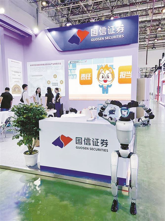 人形机器人在展会现场“接待”。(记者 杨霞瑜 摄)