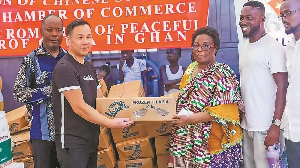 自2017年起,每年向加纳大学孔子学院捐款捐物,支持“汉语桥”比赛;常年为当地社区修路、资助贫困学生;出资举办“丝路画语艺术展”;捐资专项帮扶贫困妇女儿童;向中加两国累计捐款捐物超过1000万元人民币;去年8月,向加纳博雷地区的受灾群众捐赠超120万赛地的物资以及款项……