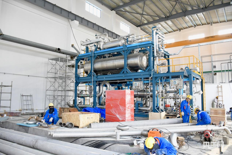福建省绿氢中试基地厂房内工人正在组装设备。央广网记者 张子剑 摄