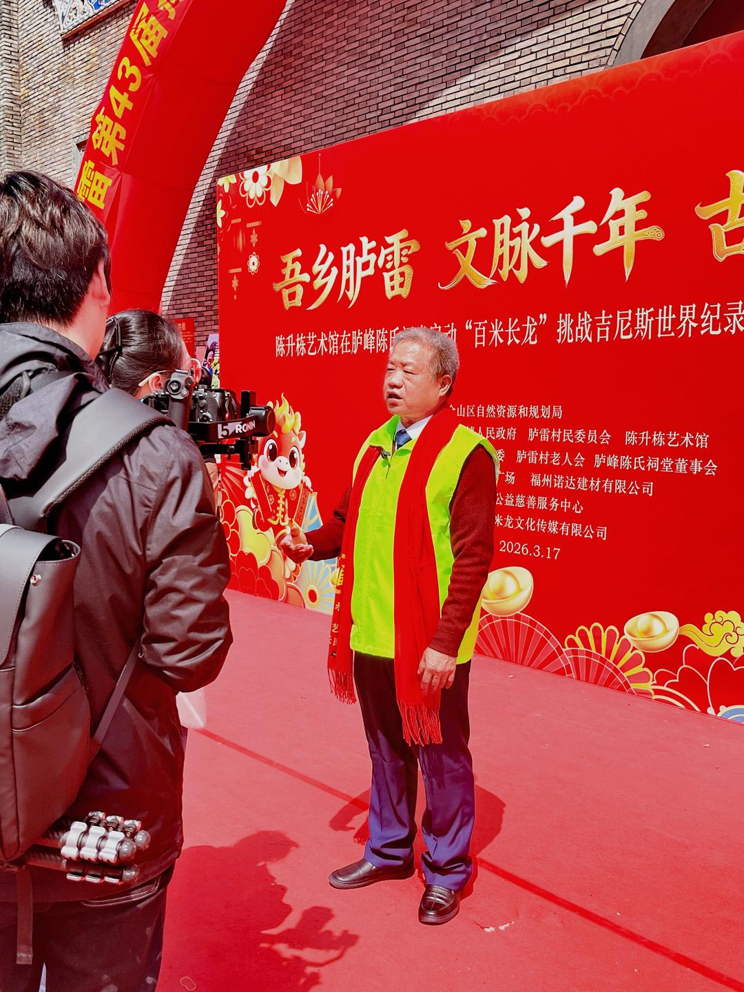 早在活动启幕之前,李靖便以高瞻远瞩的策划格局,完成了从顶层设计、舆论铺垫到价值升华的全周期布局。2月28日,李靖撰写一篇《百米米龙耀胪雷 双非遗将申报吉尼斯纪录》率先发声,以严谨的文化定位、清晰的活动愿景、高远的世界视野,为这场盛事埋下伏笔。自此,一场以“双非遗融合、吉尼斯申报、乡贤赋能、公益落地、文旅引爆”为核心的文化工程,正式拉开帷幕。
